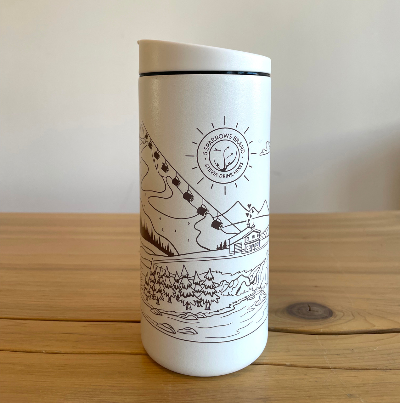 • 5 Sparrows Brand designer collection:  With design directed by CEO, Melanie, and illustrated by a local Montana artist, this mug tells the 5 Sparrows story with a touch of whimsy, attention to detail, and premium quality you’ve come to expect from our brand.